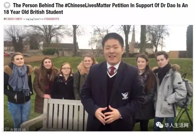 Zishi Zhang,18岁,目前正在英国就读。 Zhang说当时他看到美联邦这个新闻的时候, “完全不敢相信美联航竟然会那样对待一个老人!” 所以他决定一定尽自己能力为这名亚裔人做点什么——在白宫发起请愿活动,让政府听到我们的声音!