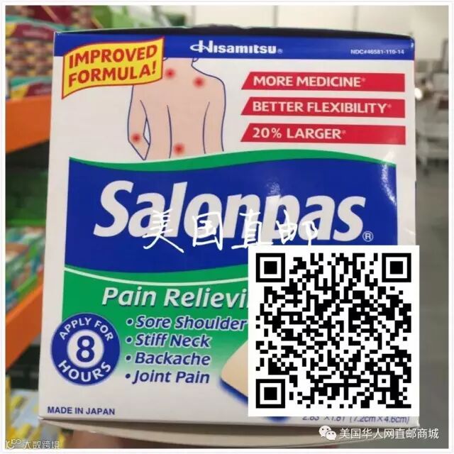 美国市场上经FDA(美国食品和药物管理局)临床认可的止*痛*贴。这是美国市场上的原装正品,是日本 Salonpas专为出口到美国在日本制造的。