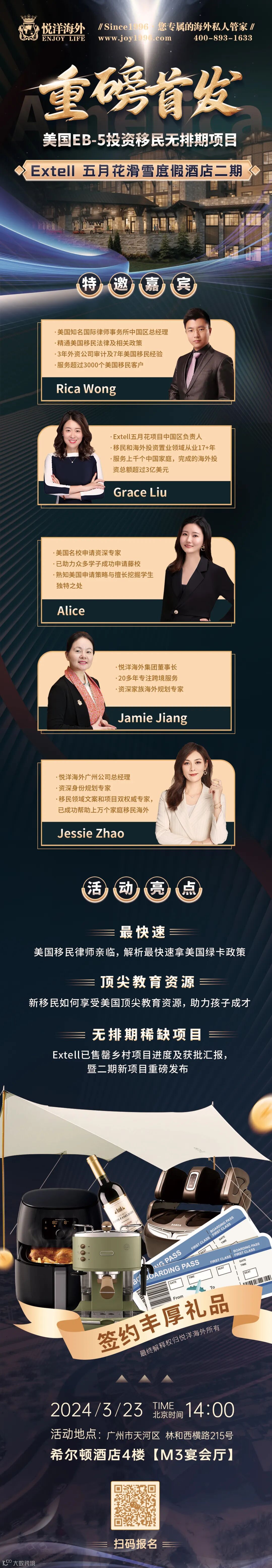 就在本周六3月23日,也就是明天14:00,悦洋海外将于广州市天河区希尔顿酒店4楼【M3宴会厅】举办美国EB-5投资移民无排期新项目首发活动!届时悦洋海外特邀美国资深移民律师、教育专家莅临现场全局解析,现场席位有限,请及早预约!