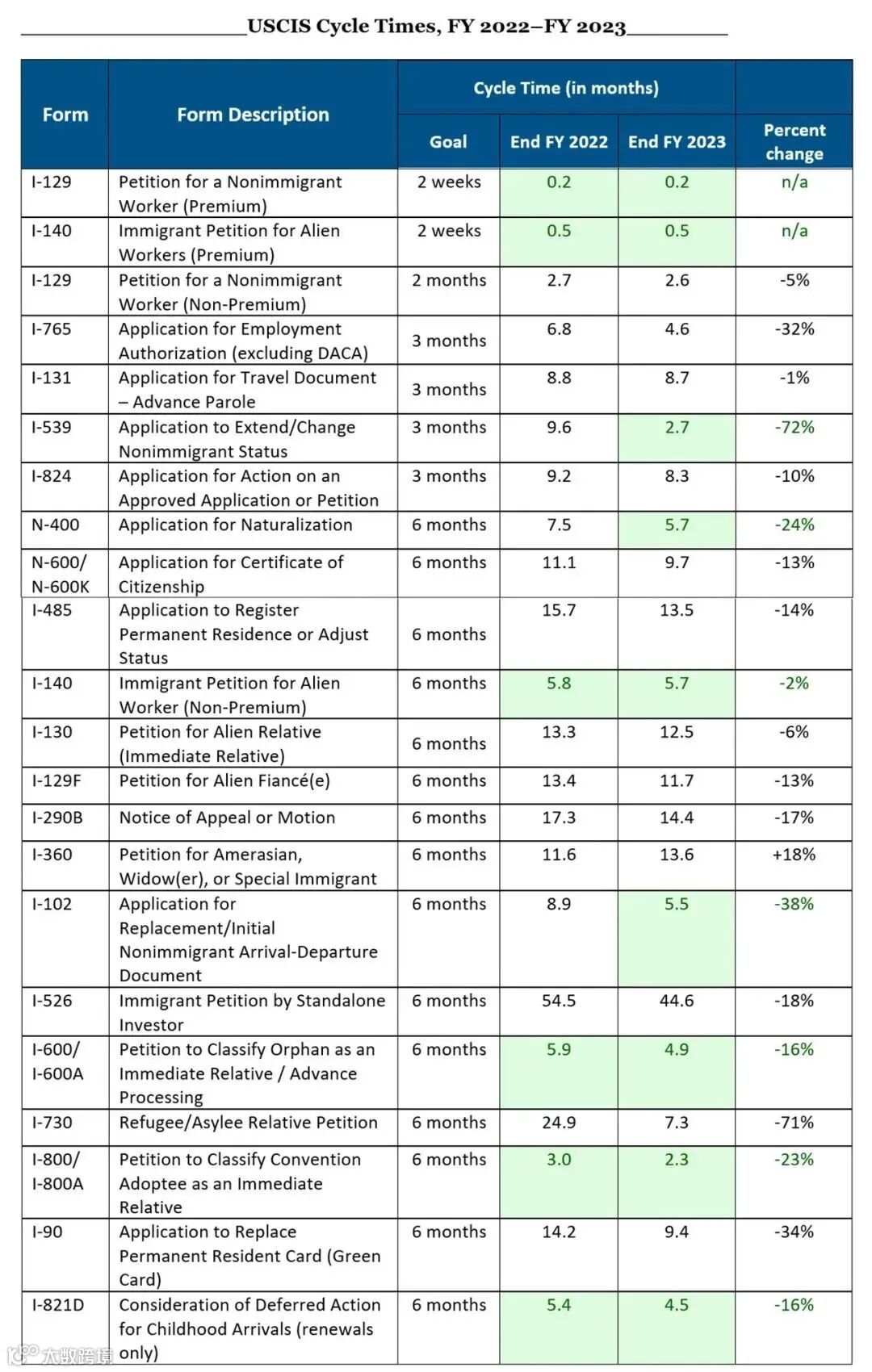 2022年3月,美国移民局为25份表格制定了新的内部周期时间目标。为达成这一目标,美国移民局改进了技术并扩大了人员配备,给美国移民申请人提供了莫大的便利,节省了等待美国绿卡的时间。