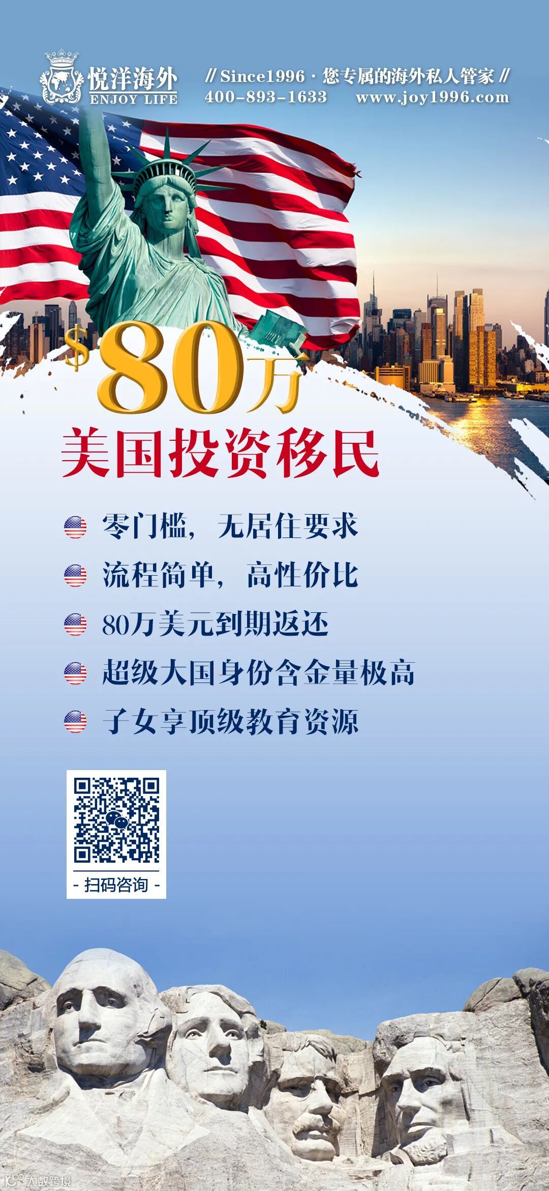 【如果您对移民感兴趣,请回复“姓名+城市+电话”至EnjoyLife悦洋海外订阅号即可,或者识别下面客服二维码,我们尽快与您取得联系!】