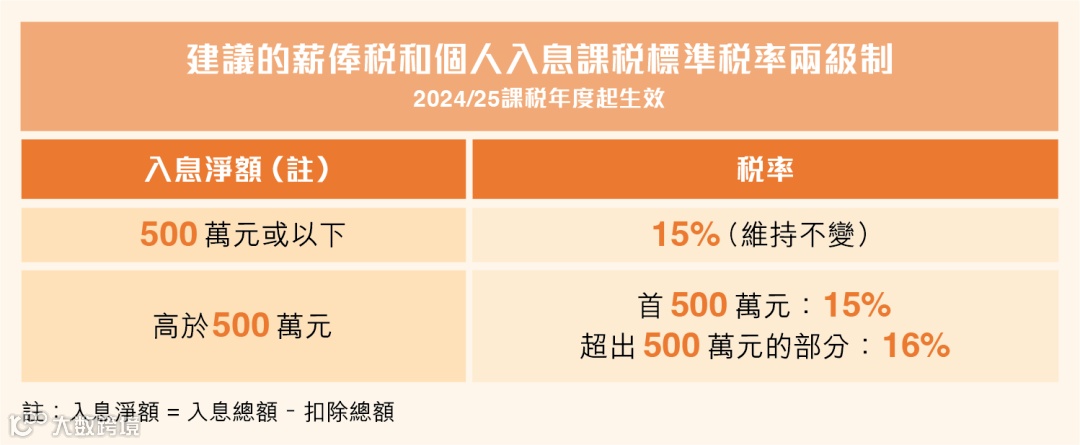 2024年3香港实施《财政预算案》,奉行能者多付,港府提出薪俸税和个人入息课税标准税率实施两级制。