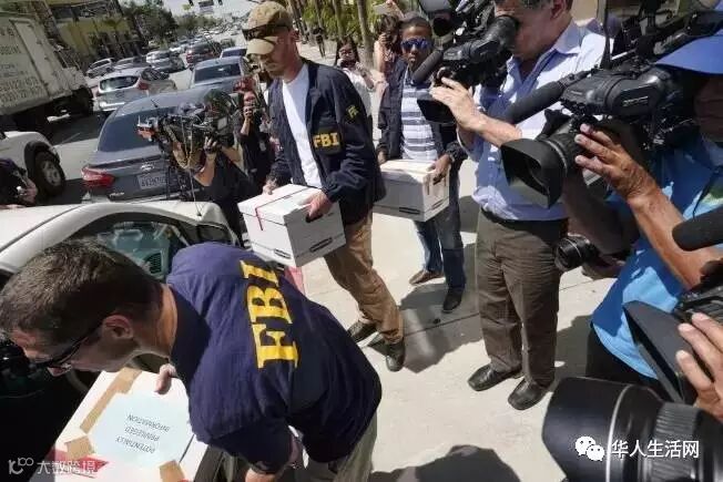 FBI也不容易,一箱箱的文件搬,旁边一些记者华人都在拍照