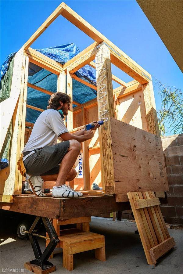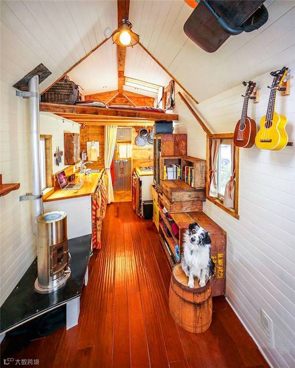 于是他们打造了一座小房子,放在拖车后面,据男主人介绍,这所小房子花了至少1000个工时,6500颗钉子,8000颗螺丝,共计花费了29328美元。