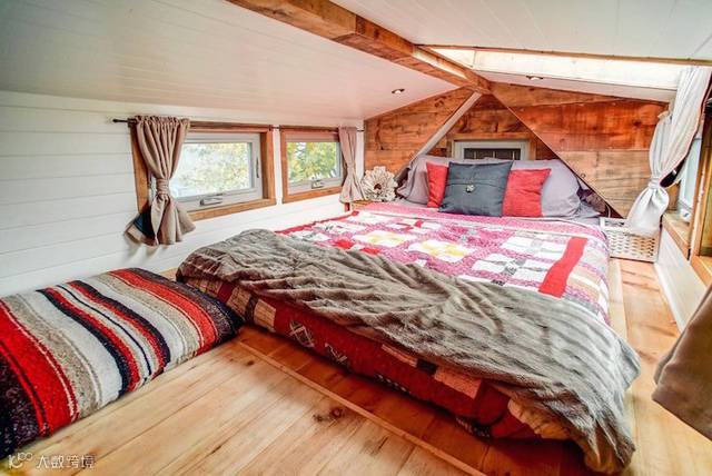 这是小房子的顶部,一间温馨的卧室。