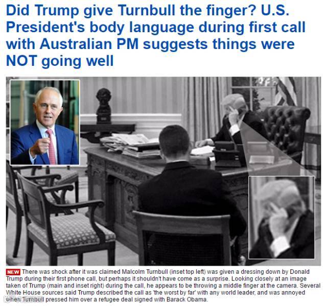 澳媒新闻截图,放大了川普的某个手指似乎表达了些什么……