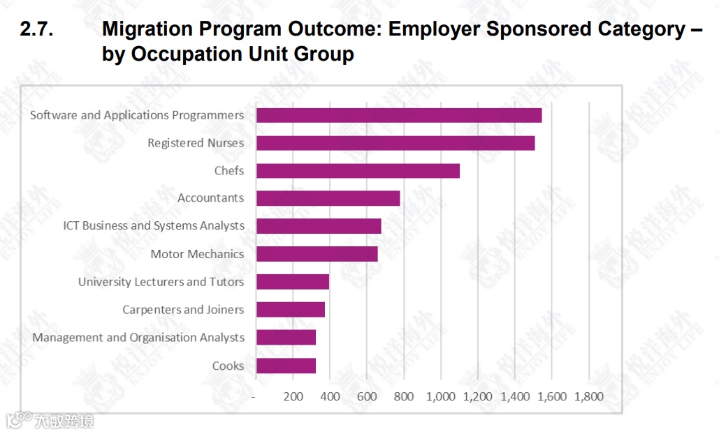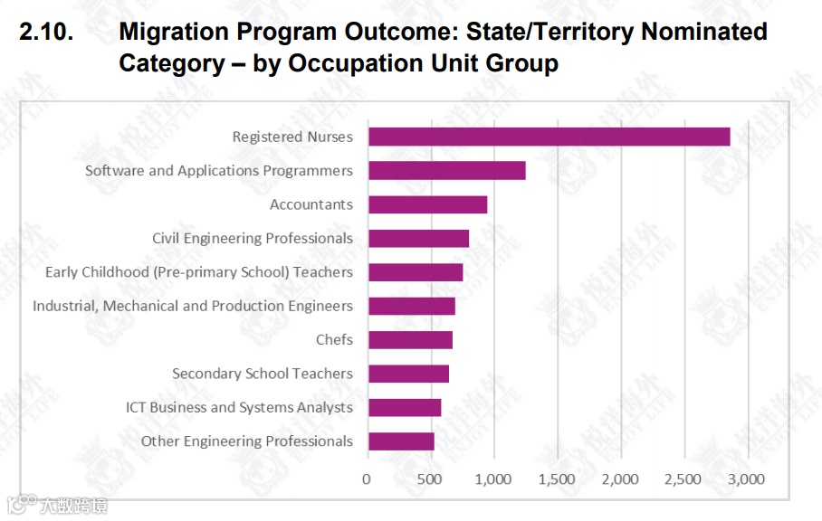从移民局的统计来看,雇主担保、独立技术移民、偏远地区担保和州担保的前十提名职业大同小异。