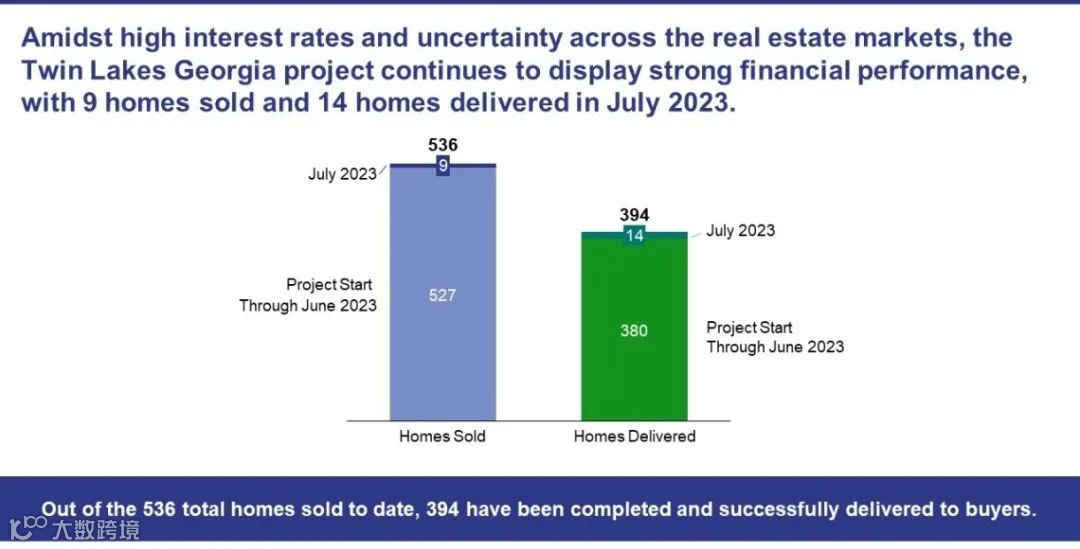 而且双子湖的大量别墅交房都是以现金形式完成,并没有使用房产贷款;别墅的预售率也很高。这使得双子湖项目能够继续稳步推进新房的建设并一步步接近完工。