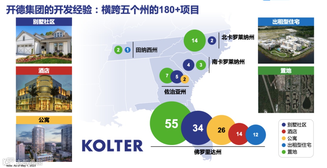 作为美国排名前列的房地产开发商之一,Kolter开德集团开发管理着多元化的项目组合,重点集中在美国的东南部地区。Kolter开德在其之前的独栋别墅社区尤其成功;目前已成功开发并交付两万多套别墅。