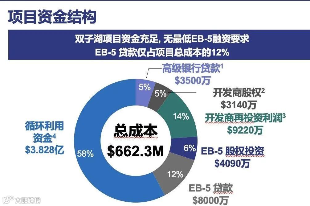双子湖别墅项目总成本为6.623亿美金,二期EB-5资金8,000万美元,仅占项目总成本的12%左右,项目进展不依赖EB-5资金。