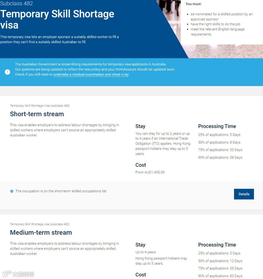 482签证不占用移民配额,短期职业清单也可经由482转186获得PR!