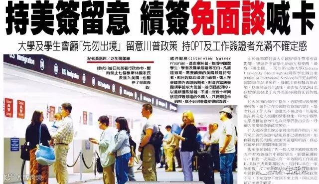 取消免面签,除了对一般入境美国时就取得五年有效签证的中国留学生学生,影响范围较小,但对一次签证只有一年效期的工作签证H1B持者有则影响较大,现持H1B在一家学术机构工作的吴小姐说,本来计划春假回中国探亲顺便重新签证,但也担心现在政策不明,不知道会不会回不来上班,所以决定留在美国先观望。