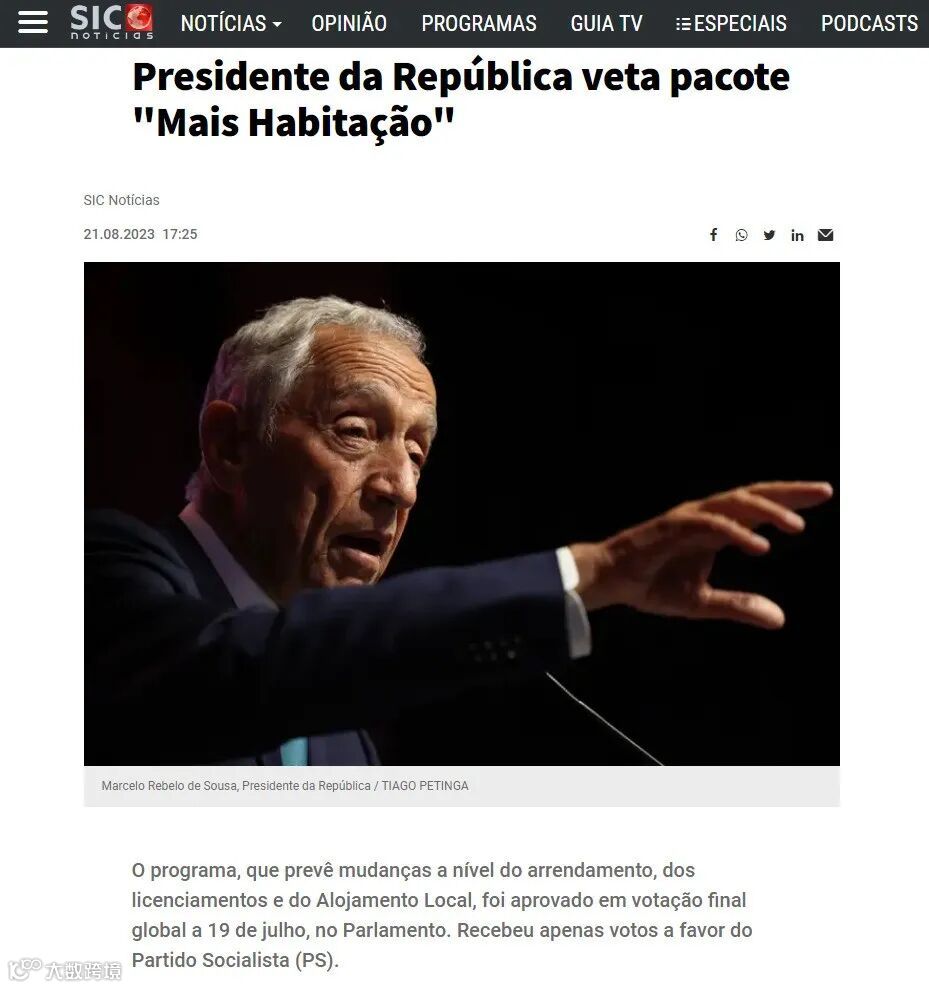 近日,葡萄牙总统Marcelo Rebelo de Sousa否决了政府提交的《更多住房法案》,将其退回议会修正。