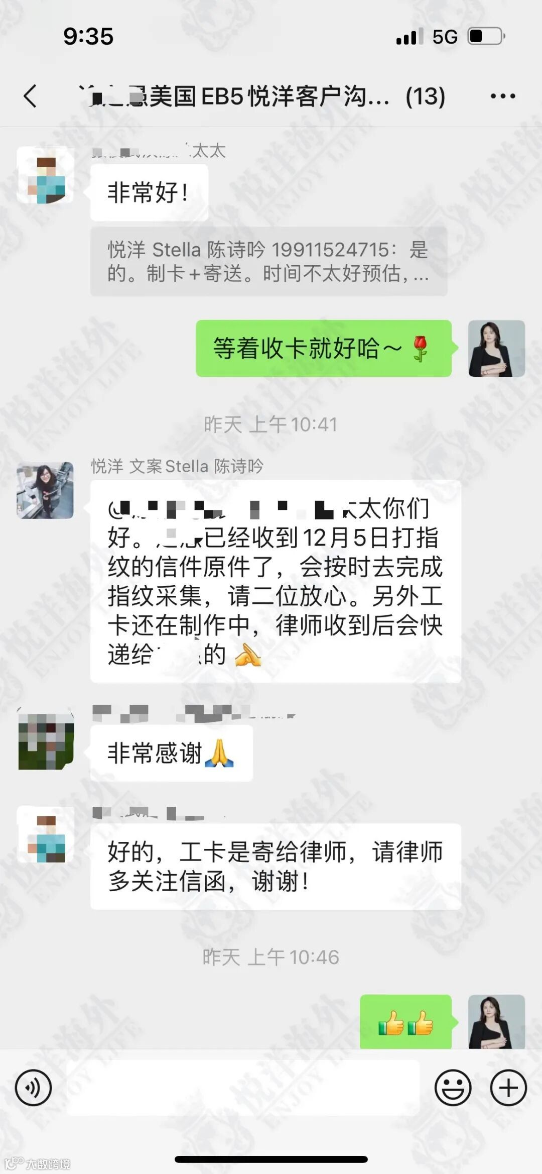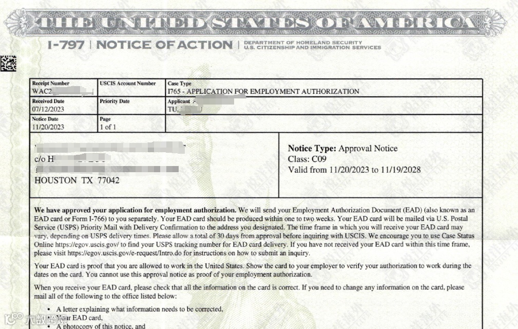 我们的文案团队,7月为客户提交了526E和I-485双递申请,很快就拿到了485的receipt,确保了客户的合法身份。11月,T小姐的工卡和回美证都顺利获批,T小姐在毕业后可以无缝连接正式工作合约,解决了父母担忧的身份+工作的双重问题。