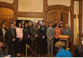 当天,李孟贤与提出这项议案并使之付诸实现的韩裔市议员金贞妍、社区大学负责人等在市政府宣布了这一消息。