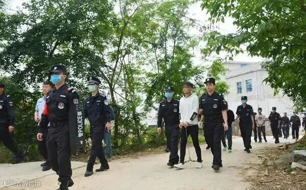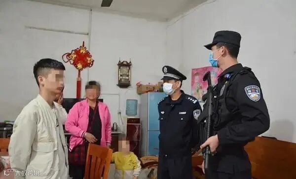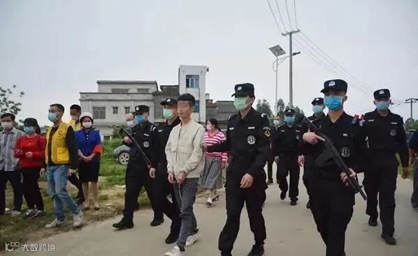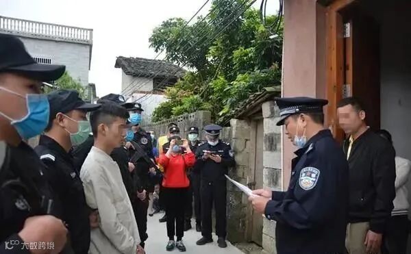 黄某某和妻子罗某双双被全副武装的警察押回村子进行现场指认和执行监视居住。