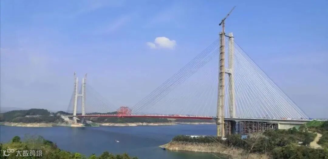 大桥总长1076米,主跨760米,一跨跨越南水北调中线源头、国家一级水源保护地——丹江口水库,“一跨过库”的建设方案,避免了大桥墩建设对水源地的影响,对现场施工环保要求极高。