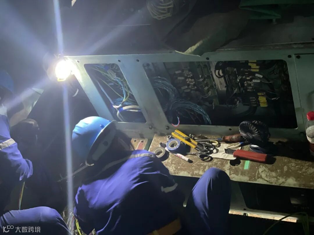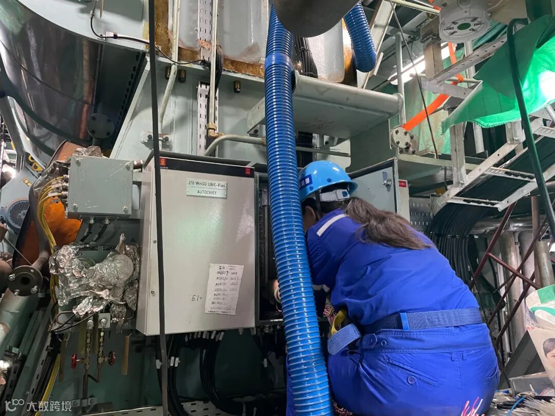 6位“女将”们就这样悬在半空中始终保持同一个姿势,硬生生坚持施工到晚上9点,最终顺利完成了主机遥控系统11个接线箱的接线工作。直到此时,她们才发觉一天全身心投入工作,水杯的水依然满满,而浑身上下却已被汗水浸透。