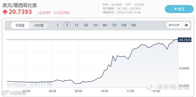 墨西哥比索跌至历史新低,美元兑墨西哥比索涨幅超过13%。