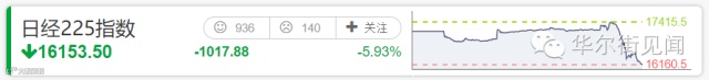 日经225指数大跌,幅度一度扩大到近6%,收盘下跌5.4%至16251.54点。