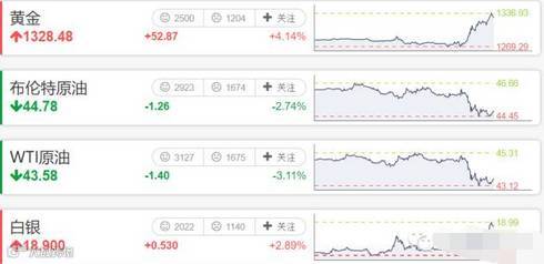 原油大跌,黄金大涨超4%,一度突破1336美元/盎司。