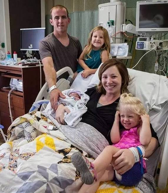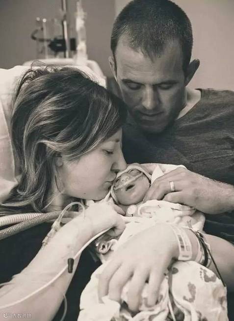 据悉,在Abbey怀孕19周产检时被医生告知肚中的女儿是无脑儿,这意味着在出生后女儿存活的时间仅仅只有几个小时。无脑儿是神经管畸形的一种。无脑畸形:为大脑完全缺失,且头皮、颅盖骨也缺失,仅有基底核等由纤维结缔组织覆盖,出生后婴儿无法生存。图为Abbey一家。