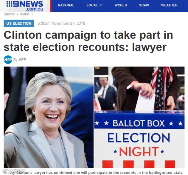 希拉里证实将参与威斯康辛州的重新计票活动!