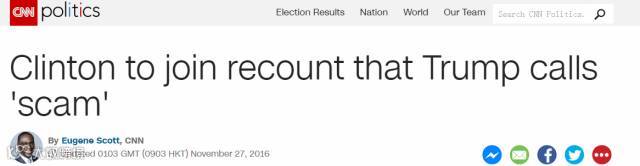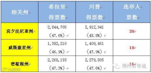如果真的重新计算选票后,希拉里能拿下威斯康星州的10票、宾州的20票,再加上密歇根州的16票,希拉里得到的票数为278张,而特朗普得票数是244,当选总统的将是希拉里而非特朗普。