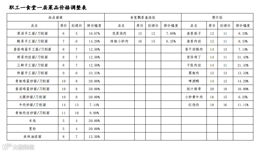 食堂让利回馈方案预计于清明节后开始实施,后勤服务部将根据方案进一步加强监管,加大处罚力度,杜绝出现职工福利“明增暗减”的情况。