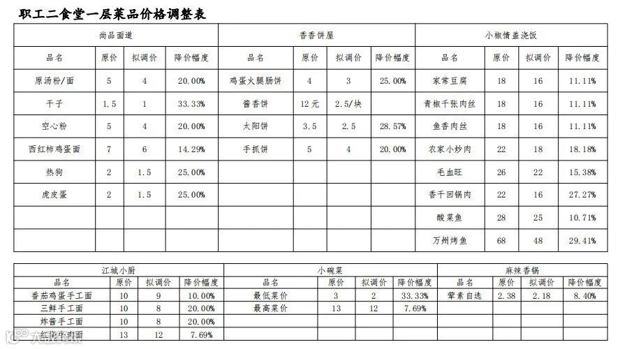 此外,职工实事“在保证菜品质量不下降的前提下,适当调整菜品售价”,经后勤服务部与餐饮服务商多轮磋商、协调后,双方就《武船职工食堂让利回馈方案》基本达成一致意见。