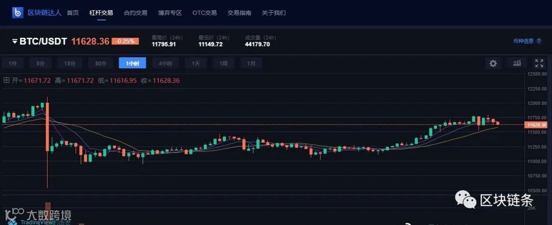 区块链达人Coinicle-BTC 1小时K线(10:10),报价11,628.36美元,日内跌幅0.25%。