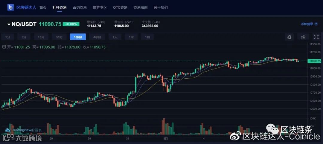 区块链达人Coinicle-小纳指期货 1小时K线(11:20),报价11,090.78美元。