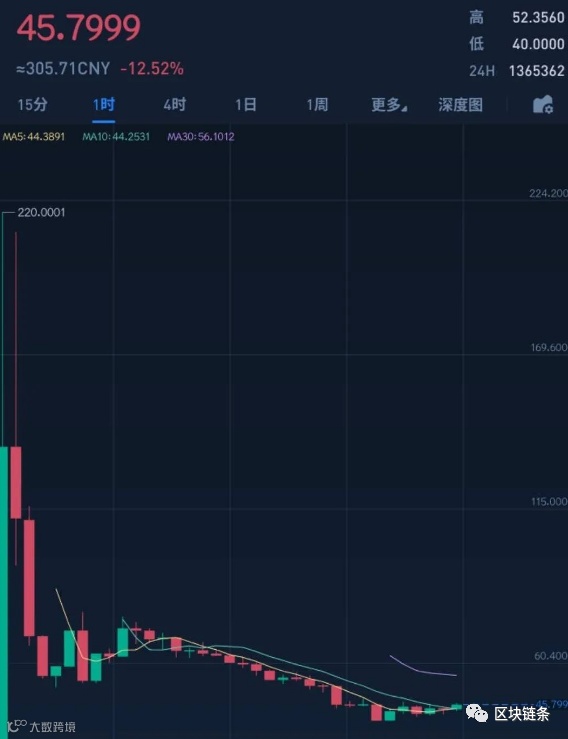 事实也确实如此,火币FIL开通后,短暂冲到了220美元,当时还有群友在微信群里发,说很多人暴富了,涨的这么高,还想进去梭哈一把。还好他手没那么快。没多久,FIL的价格就直接腰斩了,结果还不算完,腰斩之后还有腰斩。因为昨天OK事件的影响,整个币市迎来了下跌,FIL这种热门币也下跌不少,现在只有不到50美元了。