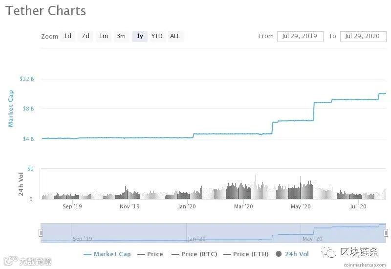 Tether(USDT)市值达到100亿美元 来源:CoinMarketCap