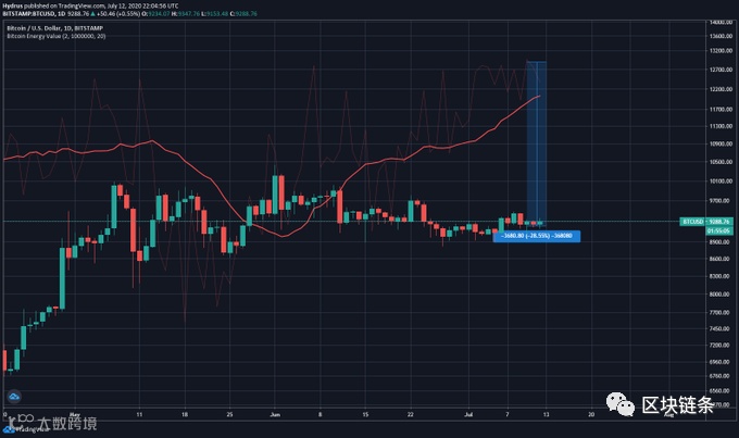 根据交易员查尔斯•爱德华兹的“能源价值”模型绘制的BTC过去几个月的价格走势图。|图源:TraidngView.com