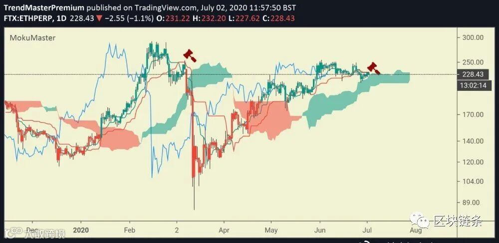 以太坊近期走势,截自@IchimokuScholar推特。