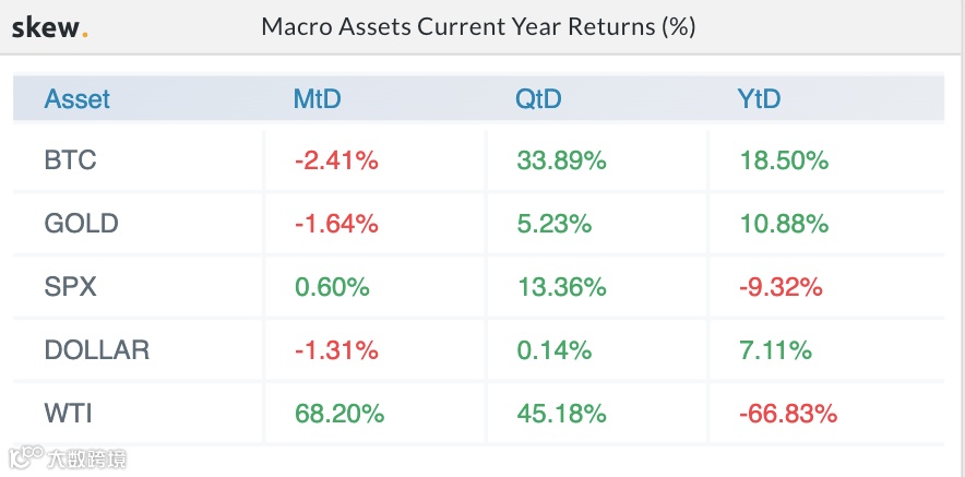 尽管比特币的价格走势平平,但与传统市场和大宗商品相比,比特币仍是今年迄今为止表现最出色的资产,并具有明显的领先优势。