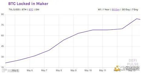 JayHao分析称,由于BTC相对于ETH更受用户认可,也相对ETH稳定一些,所以我们在看到MakerDao上ETH锁仓量下降的同时,BTC的锁仓量增加了。