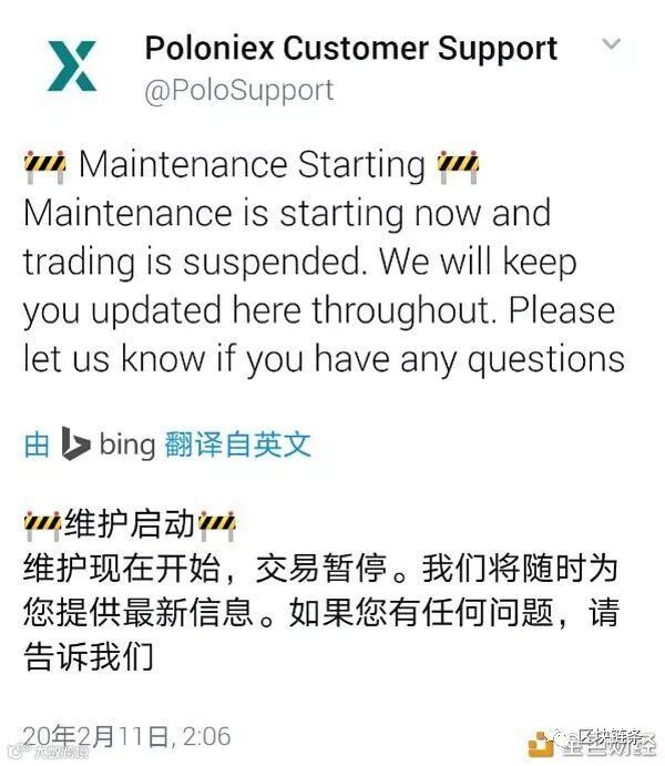 下午Poloniex已退出维护模式,并重新启动所有市场交易。