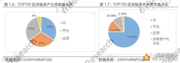 注:根据区块链资产代表权益属性的不同将其分为“币”、“平台”“应用”和“实物资产通证化”四类。