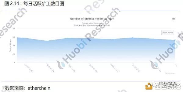 以太坊本周平均活跃矿工数较上周下降4.80%。2019年12月9日至12月15日,以太坊平均活跃矿工数为55.5人,较上周下降4.80%。