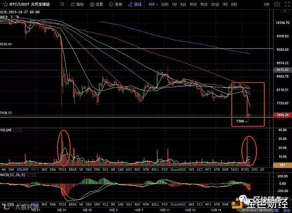 昨晚BTC暴跌,从8000美金骤跌至7300美金,短时在7400-7500美金区间震荡走势,从量能看,暴跌时释放了天量成交,短时继续瀑布的概率偏低,但从反弹的量能来看,并没有如前次瀑布那样巨量反弹,意味着抄底的力量不足,整体走势并没有企稳。目前的价位,对于定投者来说,可以再加一份定投仓位。短线操作者,设置止损线后,酌情低吸高抛,期货市场仍不建议参与。BTC暴跌之下,市场安有完卵,主流币跟随全线暴跌,再次来到了9月25日暴跌的低点,短时盘面均有反弹需求,但反弹幅度需要视成交量来看,除定投外,短线轻仓参与。