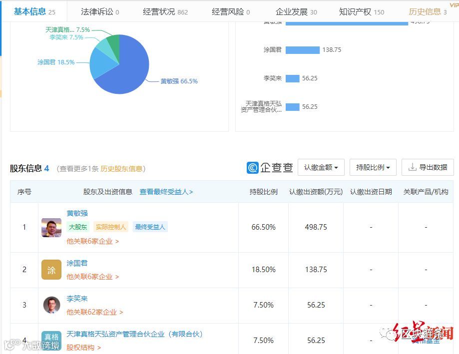 该公司法人为汉鼎宇佑(300300)前CTO黄敏强。此外,公司股东还包括涂国君以及天津真格天弘资产管理合伙企业(有限合伙),币圈知名人士李笑来则持股7.5%。