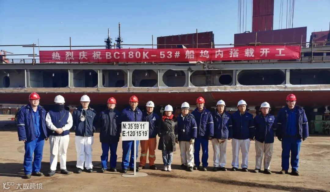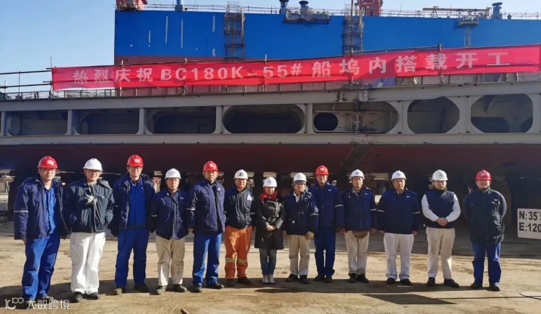 此次坞内搭载建造的18万吨散货船53号船和55号船,是北船重工建造的第五代18万吨散货船。该船型基本设计及详细设计由中船重工船舶设计研究中心完成,生产设计由北船重工船研所完成。