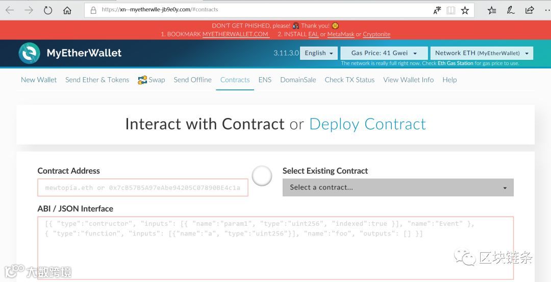 注意: 这是一个假冒的 MyEtherWallet 网站, 一旦输入私钥, 就会被盗。