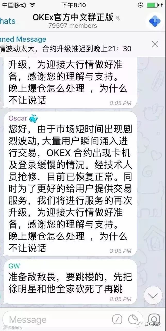 群友说:不是啊!我一直盯着看盘的,本来不会爆仓,但是OKEx关键时刻根本不上去啊!