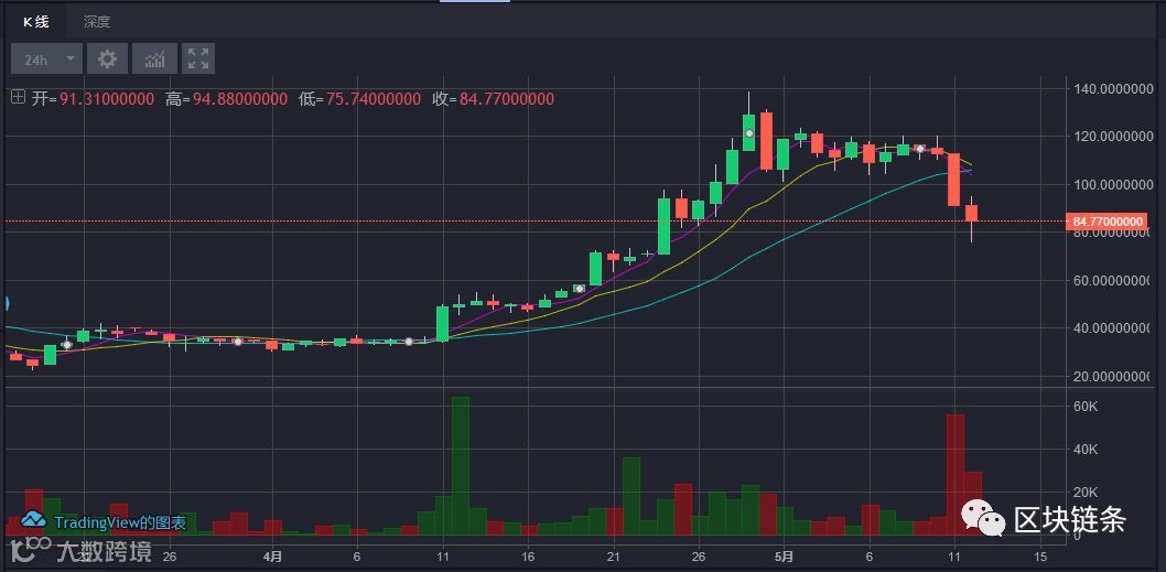 去年年底EOS一直徘徊在60元左右,今年一月猛冲至120元的高位,随之迅速下跌。