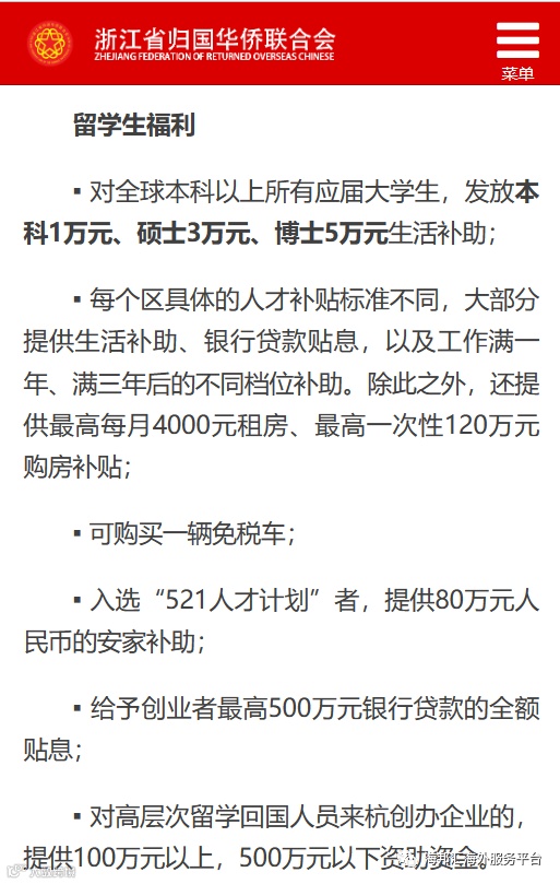 1.对全球本科以上所有应届大学生,发放本科1万元、硕士3万元、博士5万元生活补助;