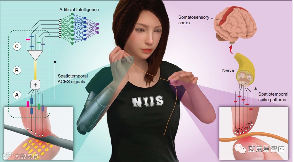 国立大学的研究团队研制出一种异步编码电子皮肤(ACES),能模拟神经系统快速传输大量受体信息,可为研发具有感知能力的人造皮肤提供借鉴。
