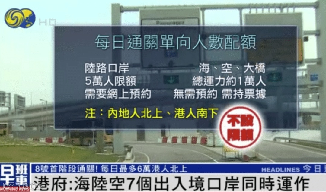 北上内地居民及南下港人不限人数。政府会与内地持续检视运作,日后再更新安排。